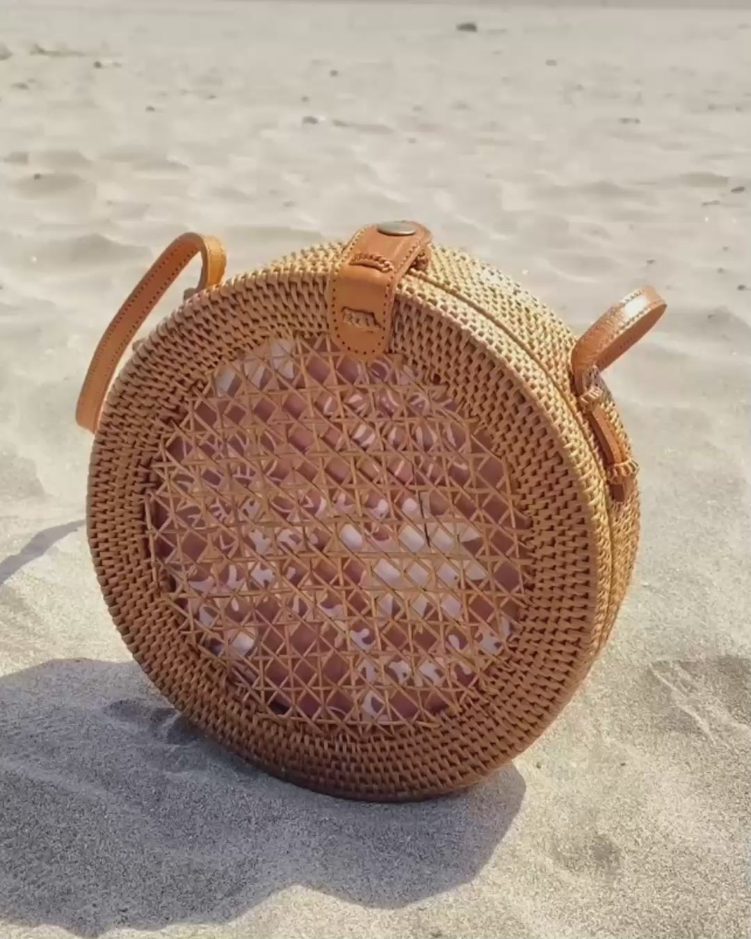Round Mesh Rattan Bali Crossbody Shoulder Bag
