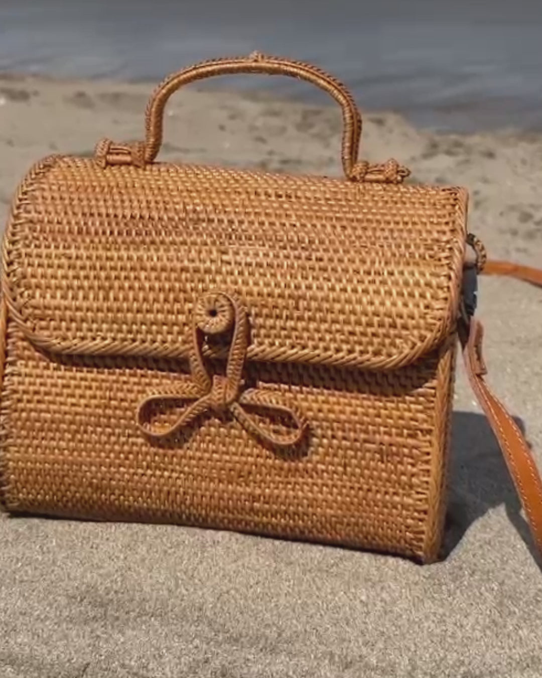Our top handle rattan bag, is handcrafted by our local artisan partners in Indonesia using eco-friendly ata material. The interior is fully lined with beautiful batik print fabric and includes a dainty interior pocket. Perfect size to carry your everyday essential. Features beautiful fine weaving and stunning tan color.